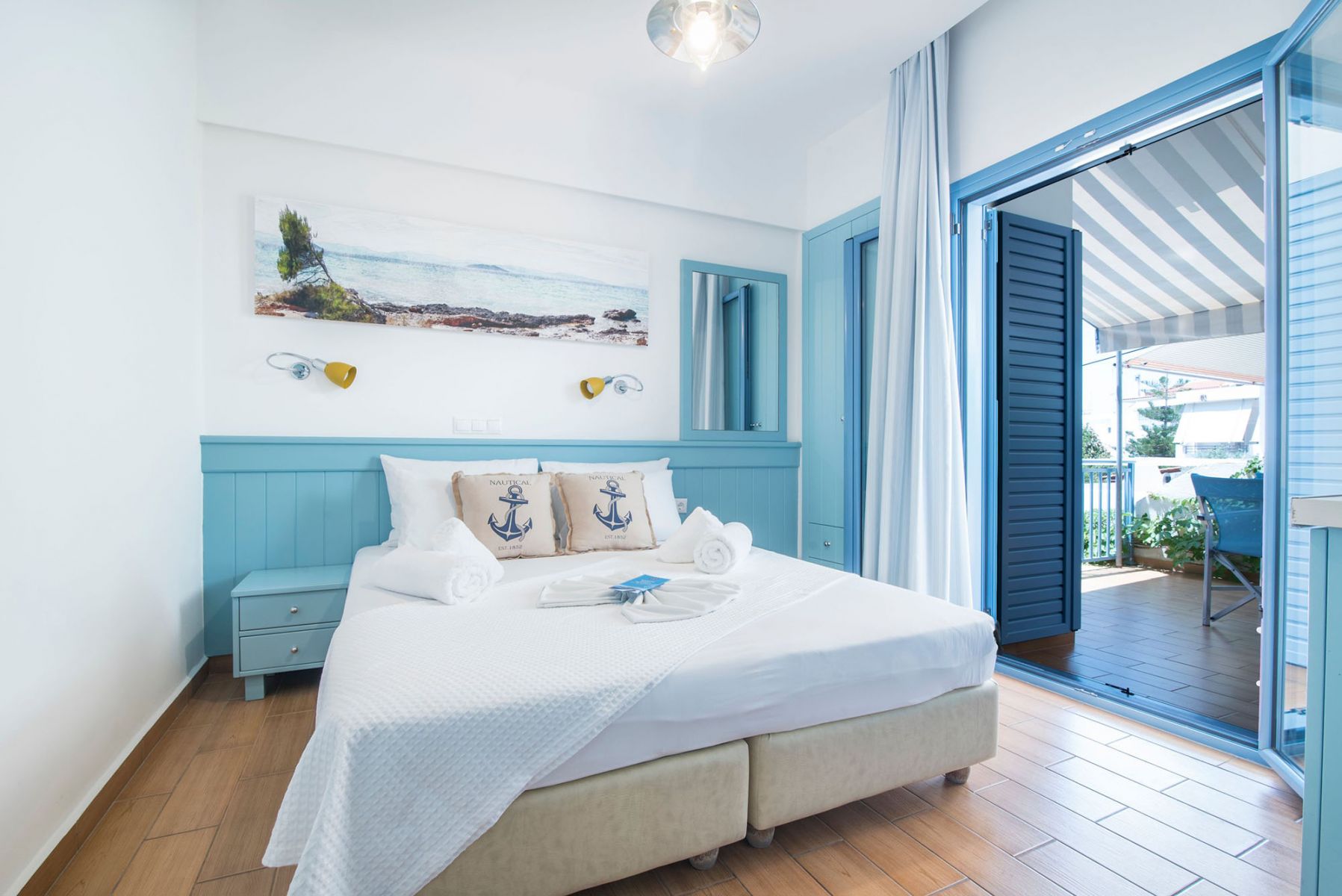 Our Double Rooms on the first floor offer a double bed or 2 single beds, private bathroom with a shower and a balcony. Further amenities include air conditioning, flat screen TV and kettle.